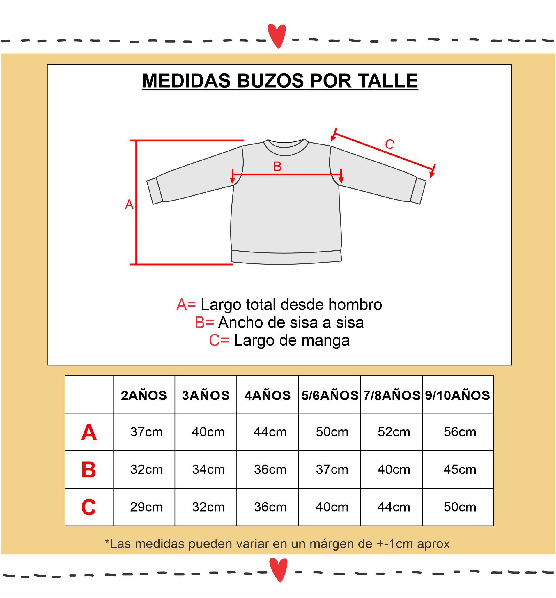 IMPORTANTE: *Te recomendamos guiarte por la tabla de medidas que se encuentra al final de esta publicación para poder comparar con alguna ropita que el/la niñ@ tenga en uso y así saber cual es el talle de Pequeño Amor que necesita. Las edades de los talles son solamente orientativas, cada niñ@ tiene diferente contextura fisica, por lo cual siempre es conveniente tomarse su tiempo para medir una prenda en uso para mayor seguridad.